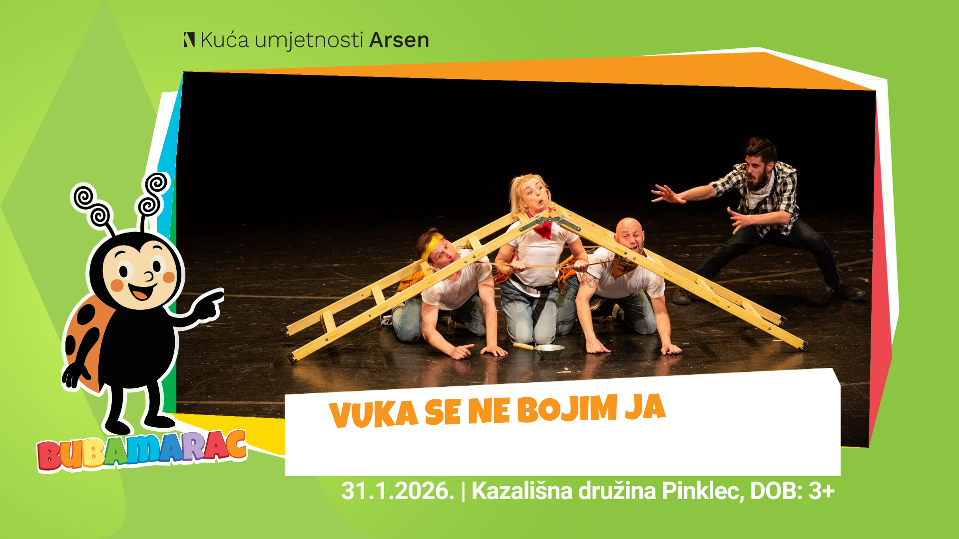 Inovativno čitanje dječjeg klasika „Tri praščića“ Kazališne družine Pinklec u prvi plan stavlja univerzalne vrijednosti – prijateljstvo, marljivost i zauzimanje za svakog pojedinca, makar on bio i vuk.