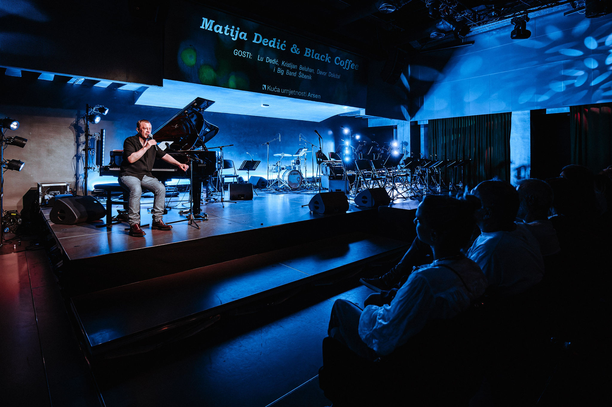 – Presretan sam. Uvijek je lijepo svirati u Šibeniku. Svima iz Kuće umjetnosti Arsen doživotno hvala jer to što su napravili za moj oca i općenito za grad je jako velika stvar. Danas se poklopilo to da mogu sa svojom braćom Black Coffee obilježiti 25 godina, a i prvi puta publici u Šibeniku, i to simbolično u didinoj kući, predstaviti i Lu Dedić koja započinje svoju karijeru. Moram spomenuti i izvanredan Big Band Šibenik koji ima potencijal da postane etablirani hrvatski jazz sastav – kazao je Matija Dedić nakon koncerta u Kući umjetnosti Arsen.